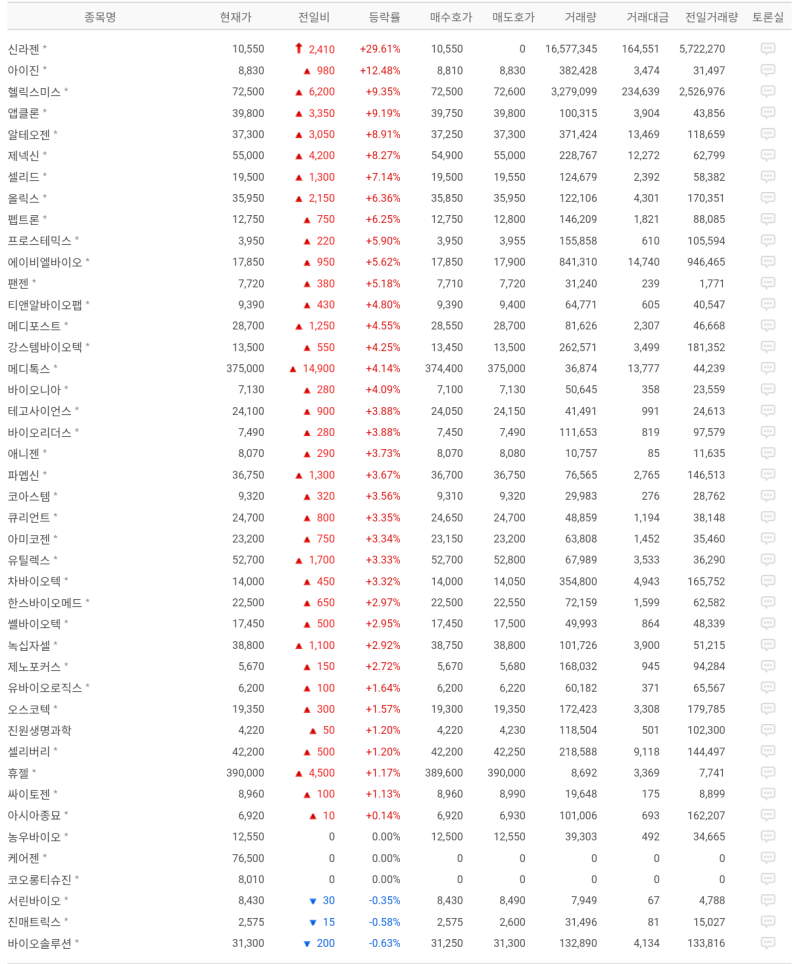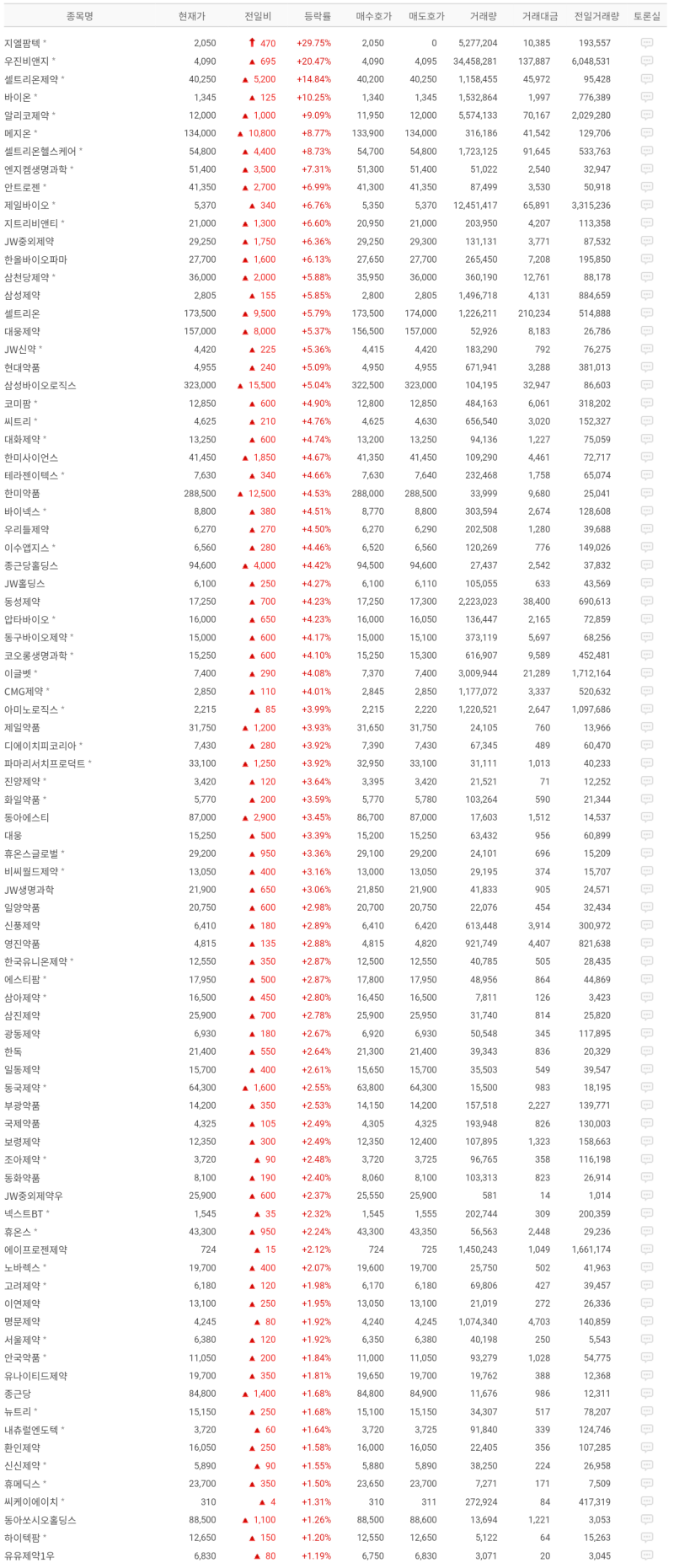 HelixSmith, Medytox, Genexine, Avielbio, Celltrion Pharmaceutical, Celltrion Healthcare and Samsung BioLogics are strong.
